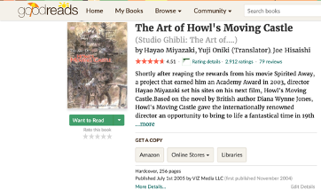 We asked the participants the question 'What do you like about the Studio Ghibli films?'. The most common reason given had something to do with the artistic component of the films. The answers used words like 'animation', 'drawing', etc... Studio Ghibli has even published "The art of...' books for a number of their films. Their ratings are very high, and they have been reviewed by many people. As you can see from the photo's taken from Goodreads.com, these artbooks have an average rating of 4.5/5 and higher.