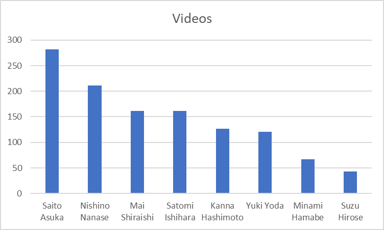 There are also other idol groups found on the site, including 216 videos containing members of the group AKB48, the “official rivals” of Nogizaka46.