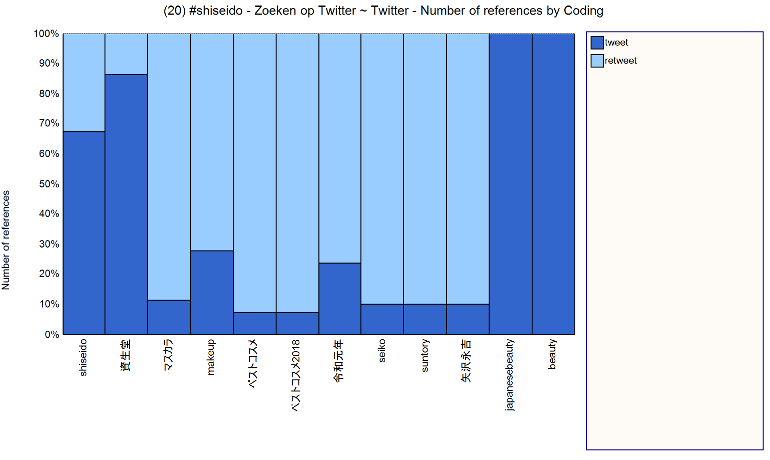 And here is a graph showing the tweets and retweets of words surrounding Shiseido.