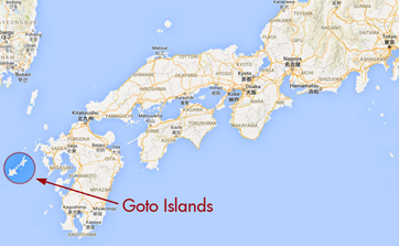 The Gotō islands are situated in the East Chinese sea, of the western cost of Kyūshū and are part of the Nagasaki prefecture. This group consists of 140 islands with the 5 main ones being: Fukue Island, Hisaka Island, Naru Island, Wakamatsu Island and Nakadori Island. The distance from the highest located island to the lowest spans about 85 kilometres. The main products of the islands are oysters and sea urchins. The island group is famous for its fishing spots and beautiful beaches.